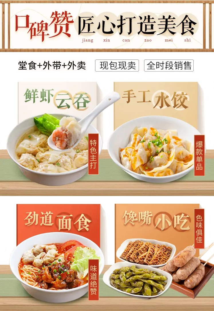 傳承精湛手工工藝,嚴(yán)格精選優(yōu)質(zhì)食材,新鮮現(xiàn)包,老少皆宜。